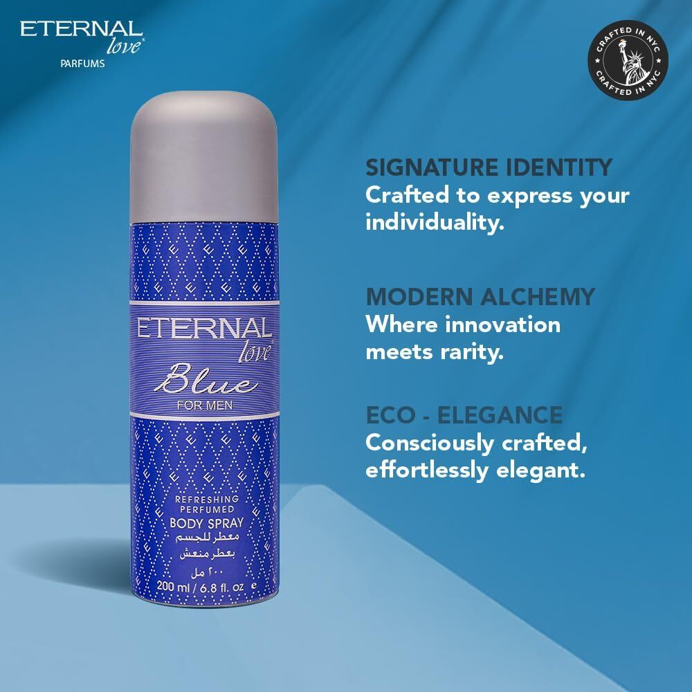 ETERNAL LOVE 2 x 200ml Men's Long Lasting Blue Body Spray (2 Packs x)