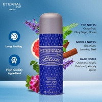 Eternal Love Blue Body Spray is vibrant and fresh. The fragrance opens with a modern mix of tangy tangerine, melon and clary sage supported by a heart of fresh basil, verbena and geranium leaf. To finish, inviting warm woods layered with sheer musk support the base. Prevents body odour and keeps sweat under control.
