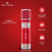 The Royal Mirage Rose Body Deodorant Spray is a refreshing and elegant fragrance designed for everyday use. Infused with the timeless scent of rose, this body spray delivers a soft floral aroma balanced with fresh and musky undertones, making it suitable for both men and women. Its light yet long-lasting formula helps keep you feeling fresh while providing effective protection against body odour throughout the day. Perfect for daily wear, work, or casual outings, this 200ml spray offers a classic fragrance experience in an affordable and convenient format.