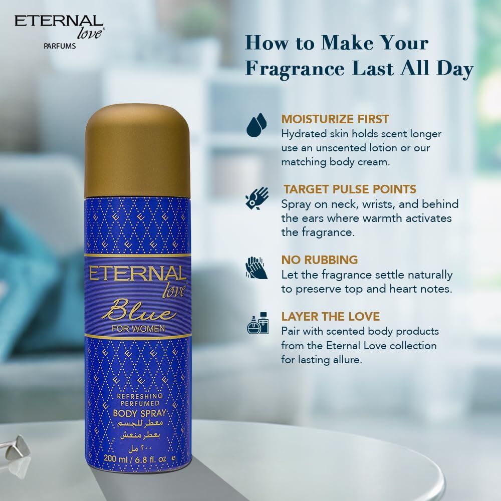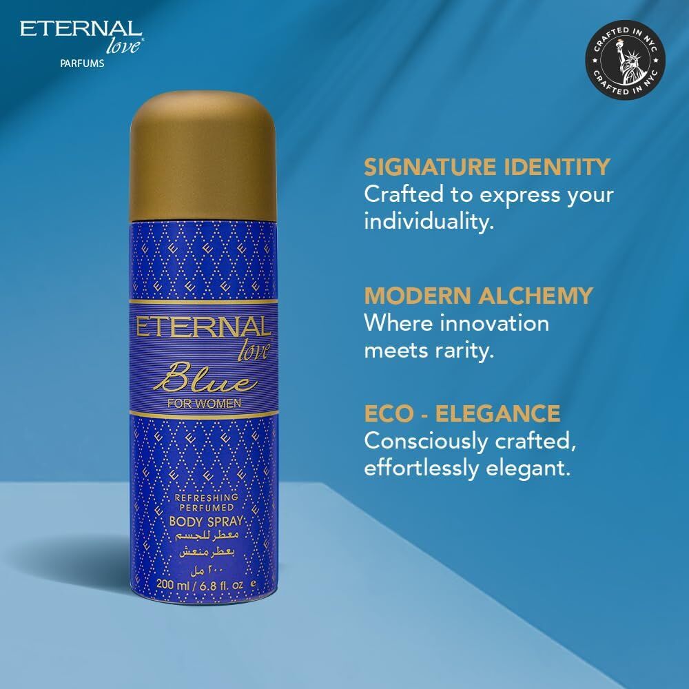 ETERNAL LOVE 200ml Women's Floral Fresh Fruity Long Lasting Blue Body Spray