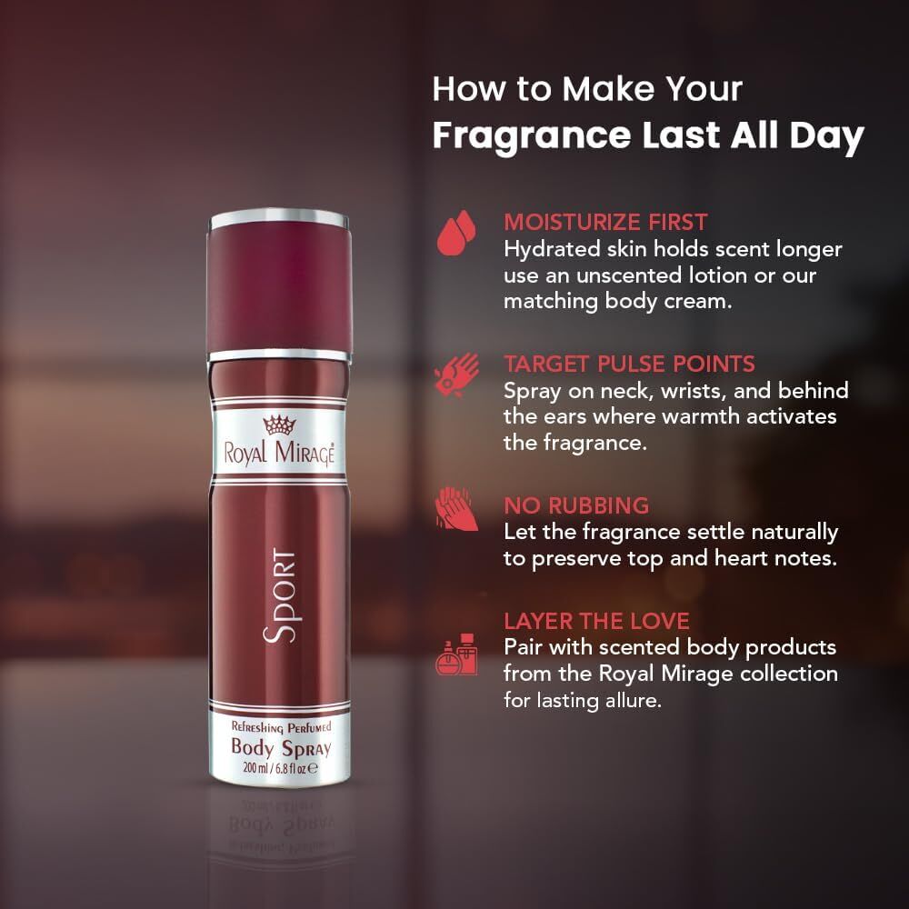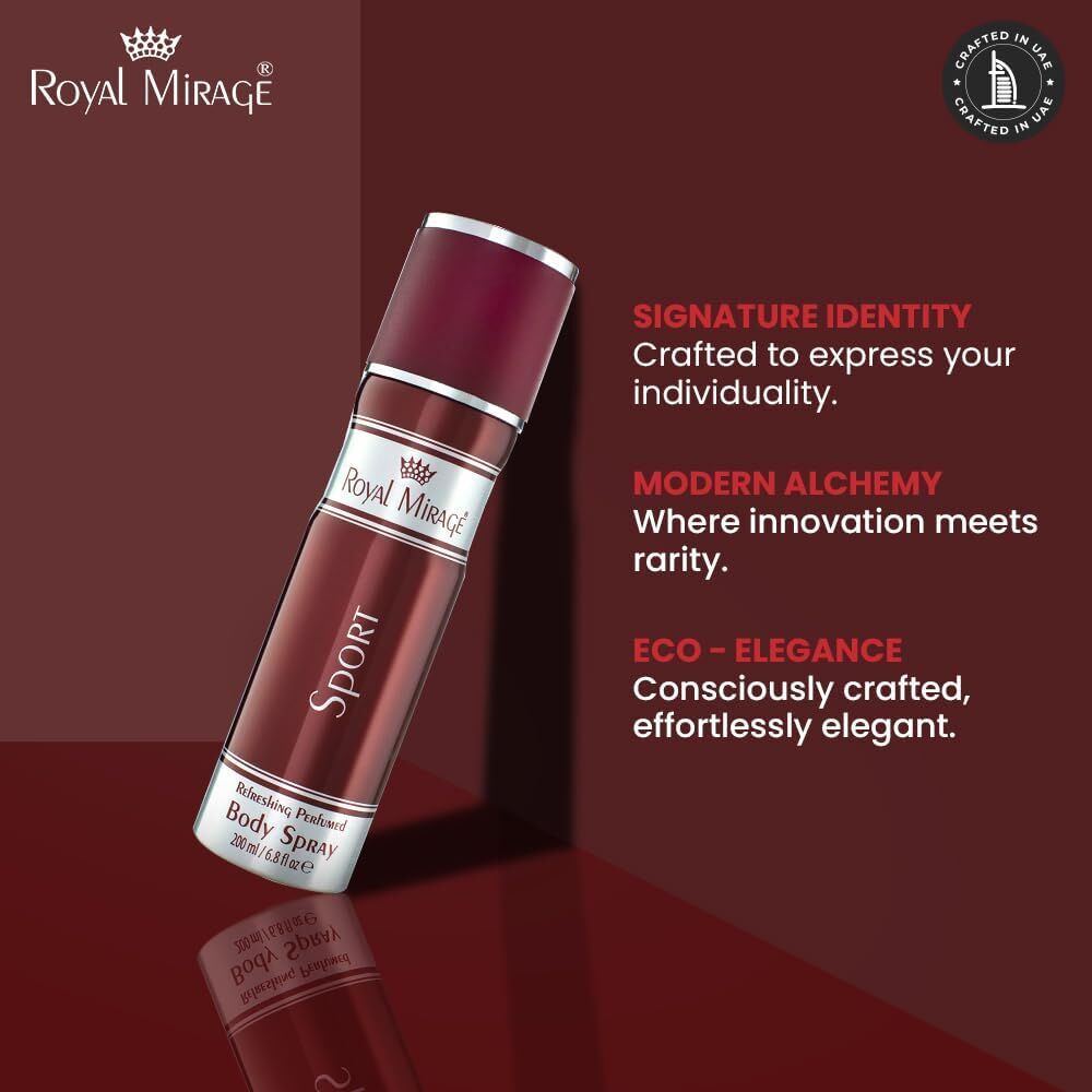 ROYAL MIRAGE 3 x 200ml Men's Sport Long Lasting Daily Body Deodorant Spray (3 Pack x)