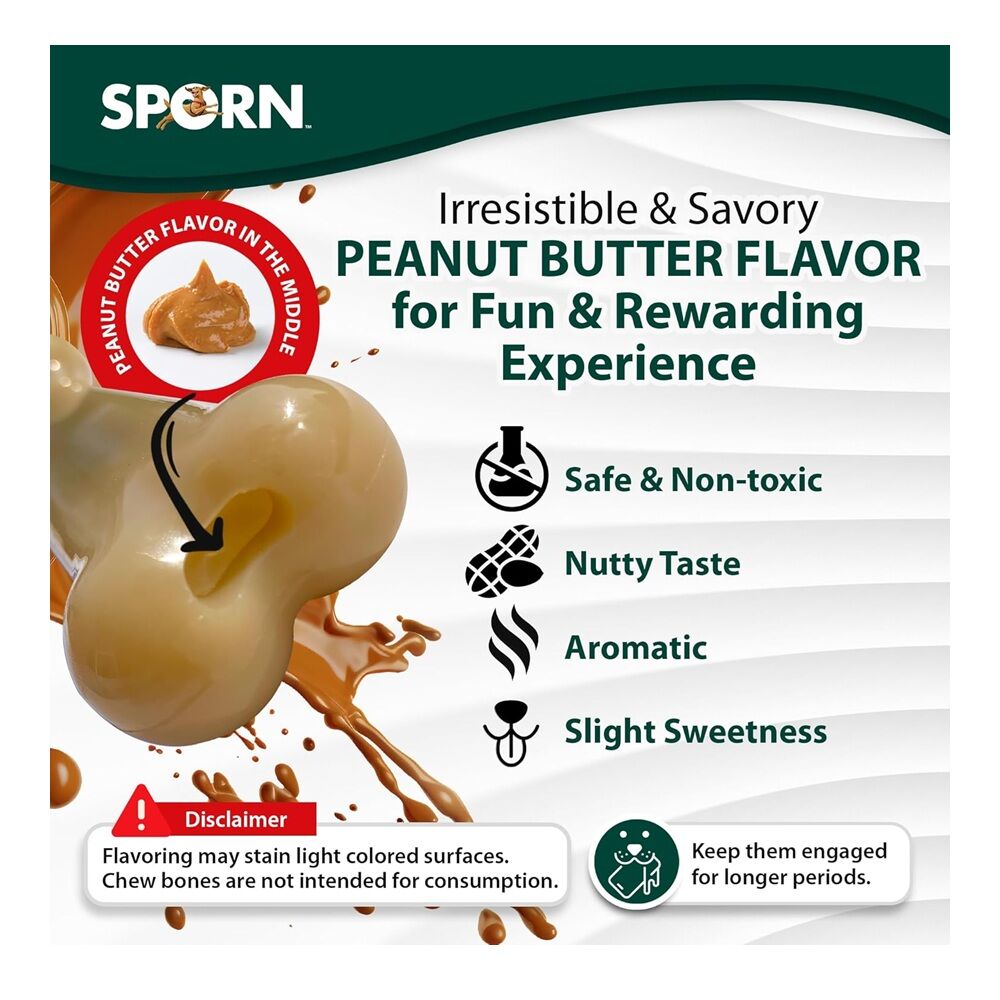 SPORN 3 x Large Durable Peanut Butter Marrow Chew Bone Dog's Toy (3 Pack x)