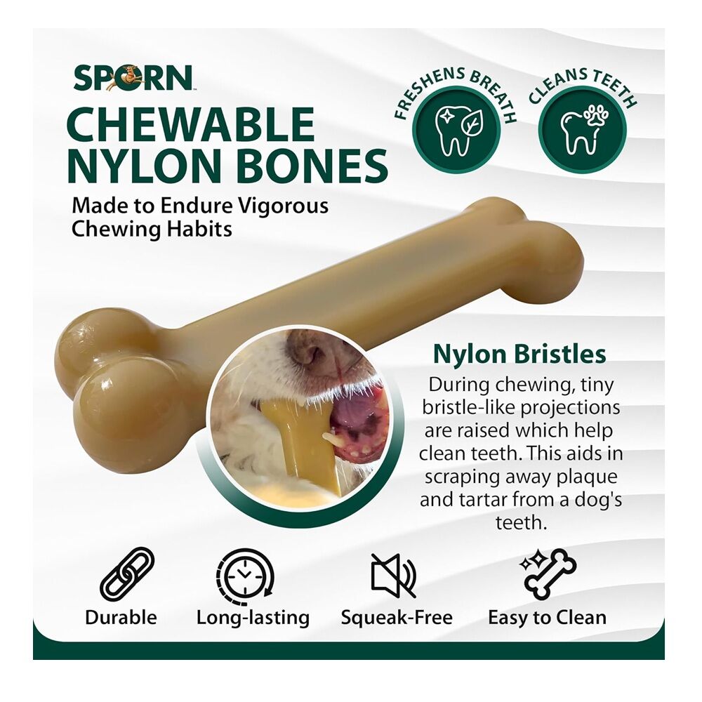 - Chewable nylon bones with peanut butter flavor down the middle