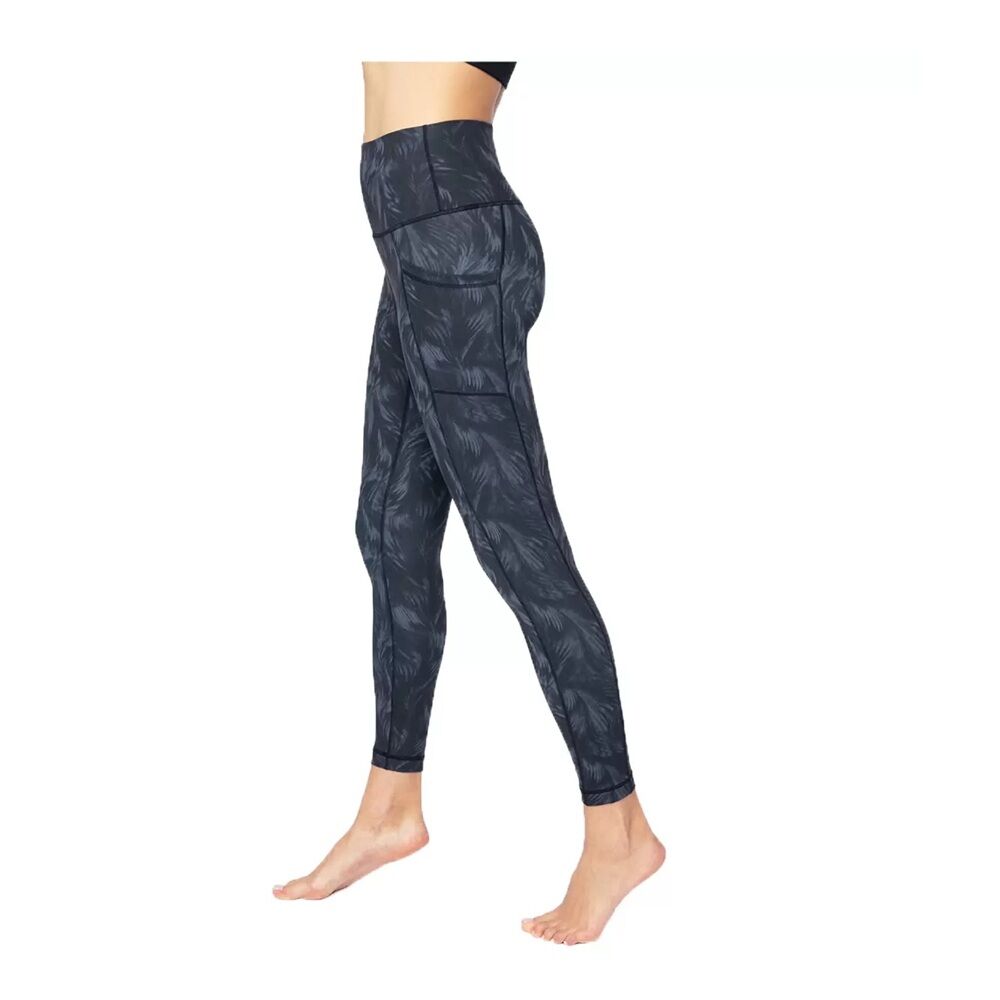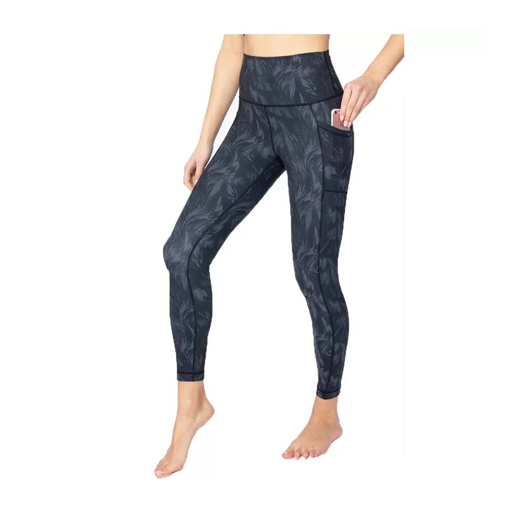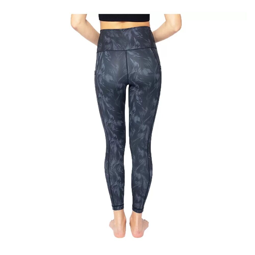 3 x 90 DEGREE BY REFLEX Women's Feather Palm Tree Ankle Leggings with Side Pockets - Black / Grey