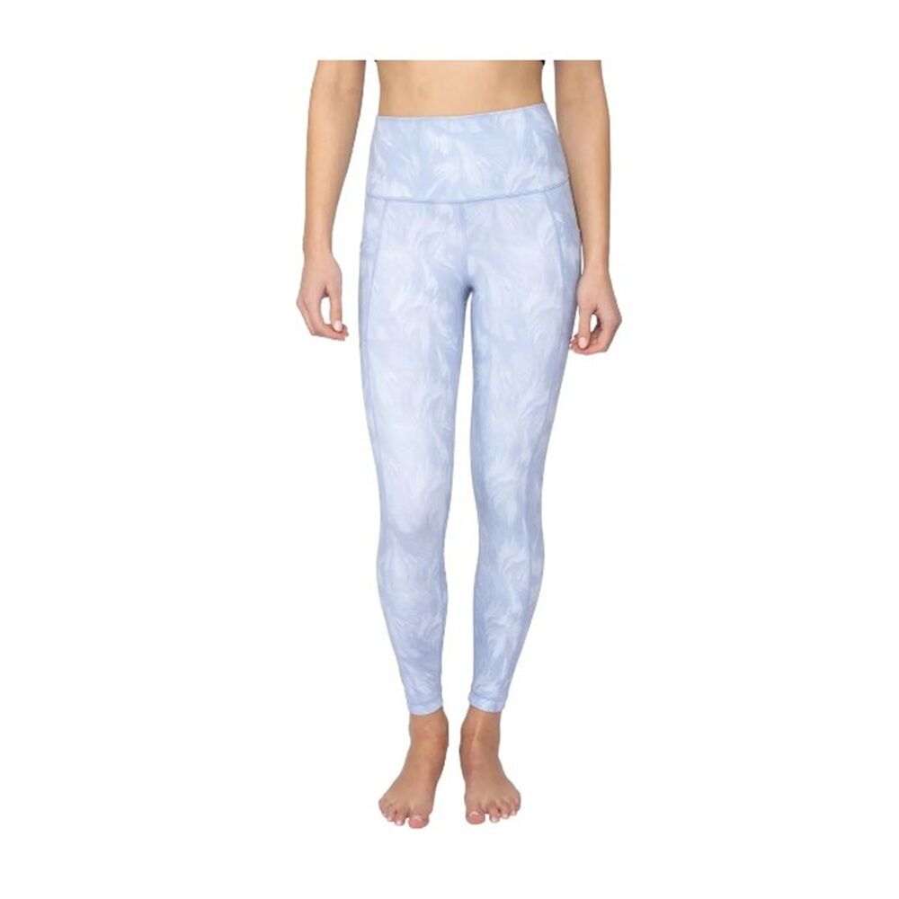 3 x 90 DEGREE BY REFLEX Women's Feather Palm Tree Ankle Leggings with Side Pockets - White / Grey