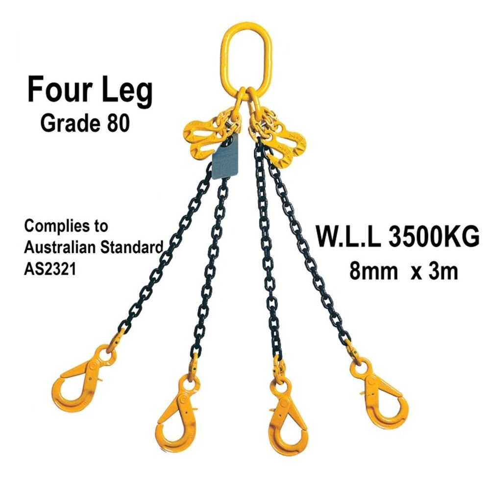 LIFT SAFE 4 Leg Chain Sling - 8mm x 3m - W.L.L 3500kg - CS84X3