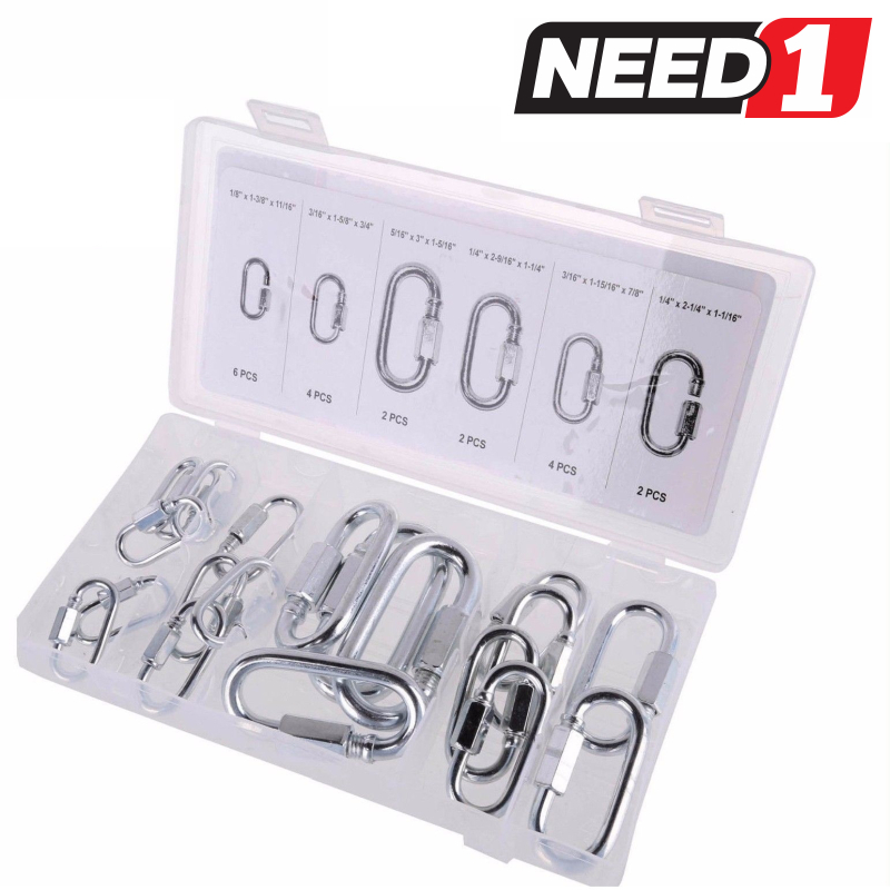 JMV Quick Link Assortment provides quick connection points for chains, ropes or cables. Conveniently organised in compartments in a clear container