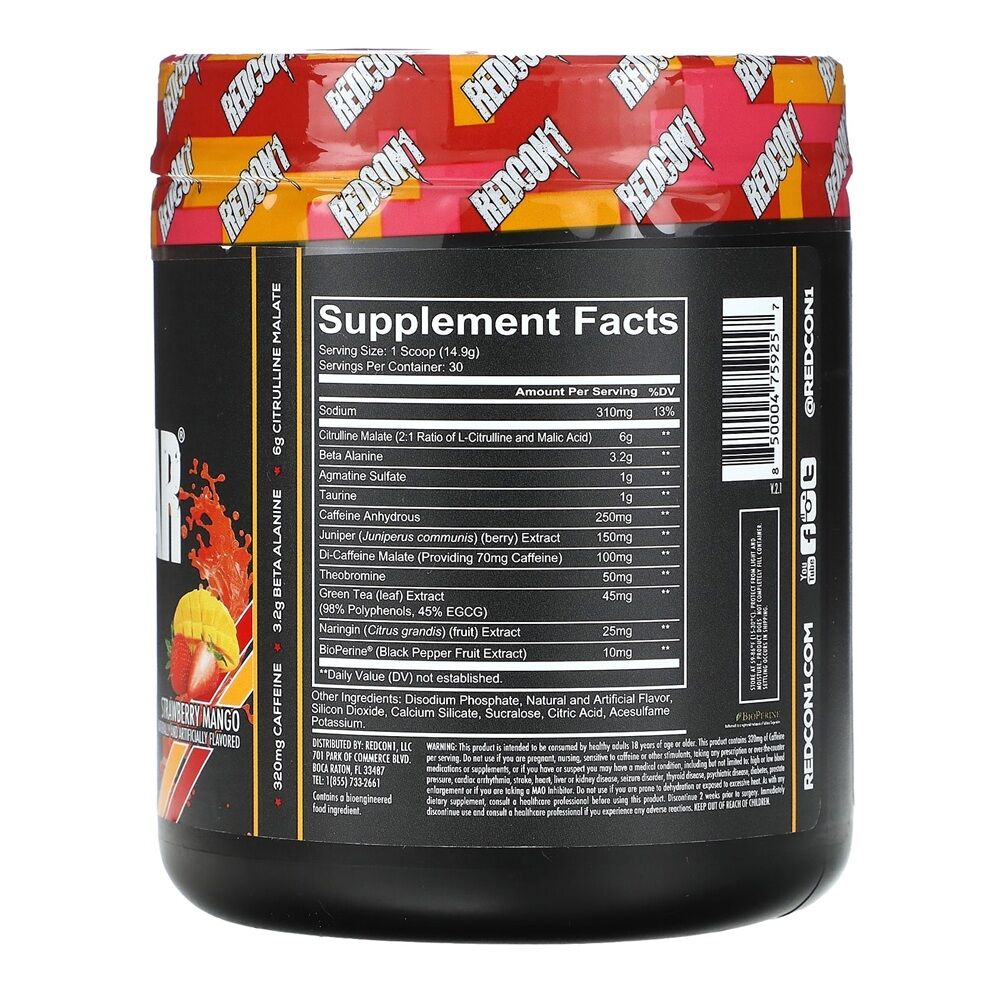 REDCON1 441g Strawberry Mango Flavour Total War Pre-workout Powder (30 Servings x)