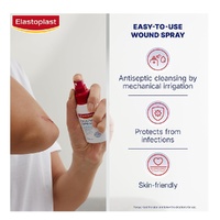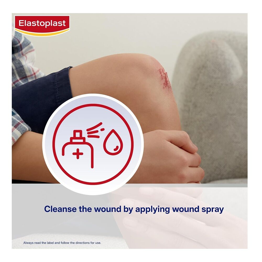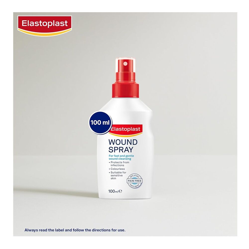 Elastoplast Wound Spray 100mL provides essential cleansing for minor acute wounds including cuts, abrasions, first and minor second-degree burns, and open blisters. This easy-to-use spray is formulated without alcohol, ensuring a pain-free application that won't dry out the skin or cause discomfort, making it ideal for both adults and children. The transparent solution cleanses effectively without staining clothes. Its gentle yet powerful formula is designed to clean wounds thoroughly, removing dirt and impurities that can lead to infection, supporting the natural healing process. The user-friendly spray bottle works well at any angle, making it perfect for on-the-go applications whether at home, in sports, or outdoor activities. Ensure you have the Elastoplast Wound Spray ready for whenever the unexpected happens, providing you with fast and effective wound care. Always read the label and follow the directions for use to ensure safe and optimal use.
