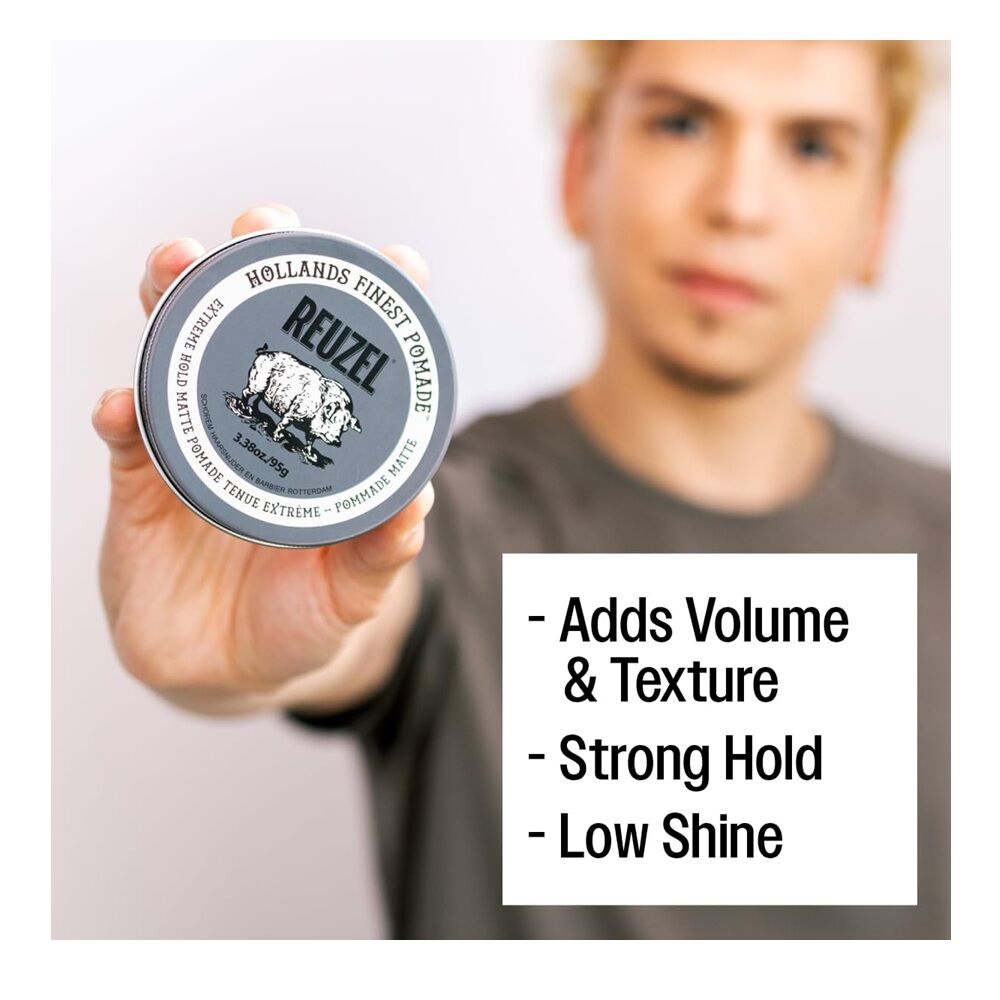 - REUZEL Extreme Hold Matte Pomade provides our strongest hold and a matte finish. This water based formula washes out easily and won't leave build up behind. It's 1 better than 10, it's an 11!