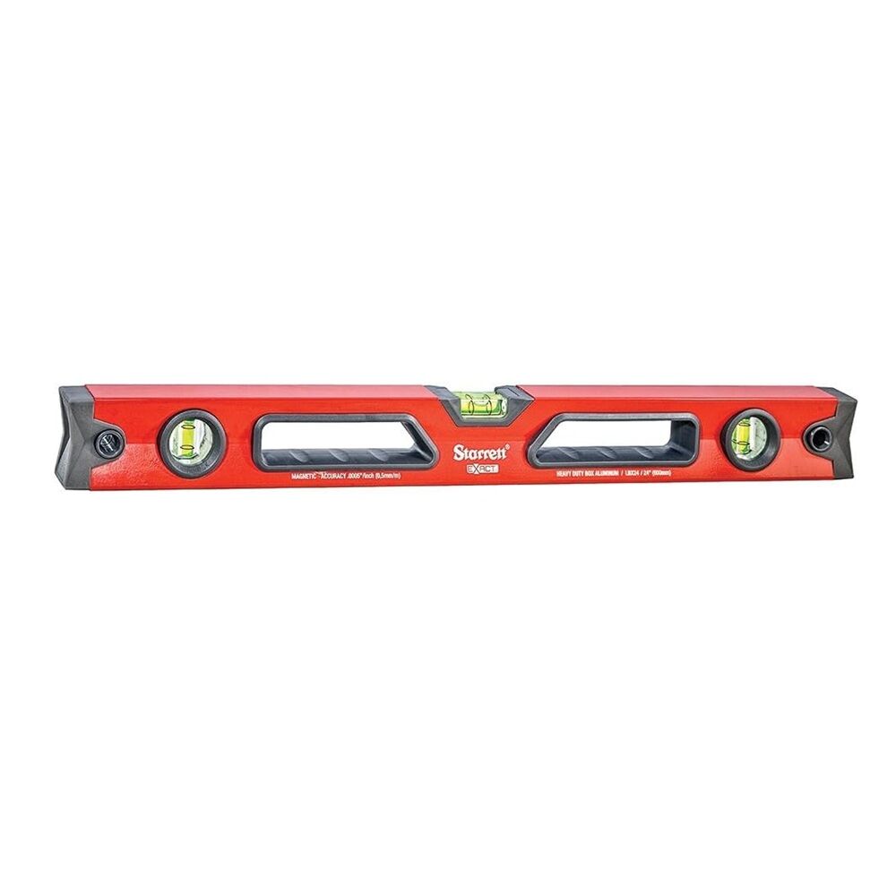 The Starrett Exact KLBX24-N Aluminum Box Beam Level is a professional precision leveling tool designed for construction, carpentry, and installation work. Manufactured with a strong aluminum box beam frame, it offers superior rigidity and durability while maintaining lightweight handling. This level features three high-visibility block vials for accurate horizontal, vertical, and angle measurements. The 600 mm (24-inch) length makes it ideal for both jobsite and workshop tasks requiring precise leveling and alignment. Built for professional tradespeople, the Starrett Exact series levels are known for accuracy, reliability, and long-lasting performance.