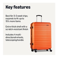 - Includes a 78 cm hardside spinner with a protective extra-thick ABS hard shell and scratch resistant orange finish