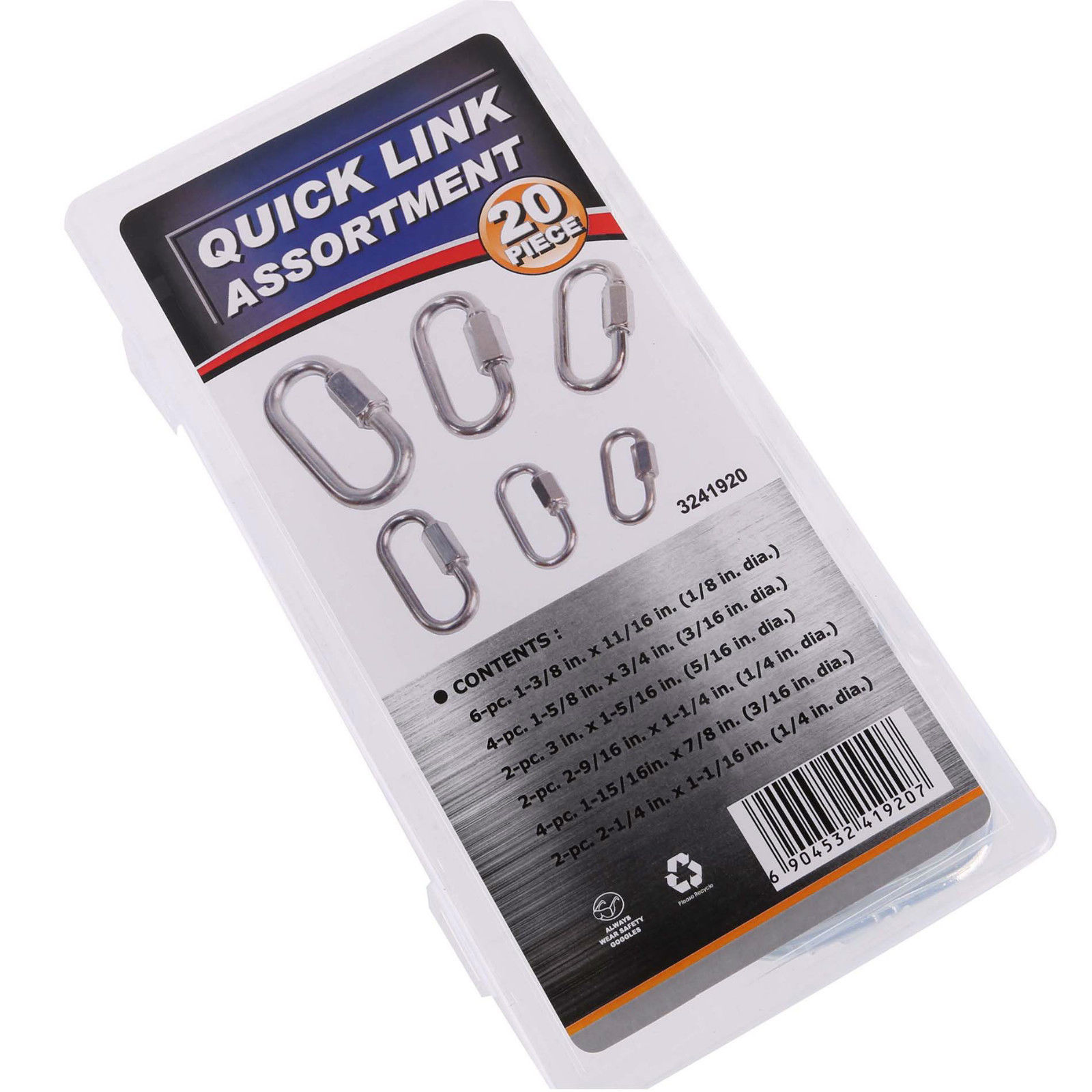 JMV Quick Link Assortment provides quick connection points for chains, ropes or cables. Conveniently organised in compartments in a clear container