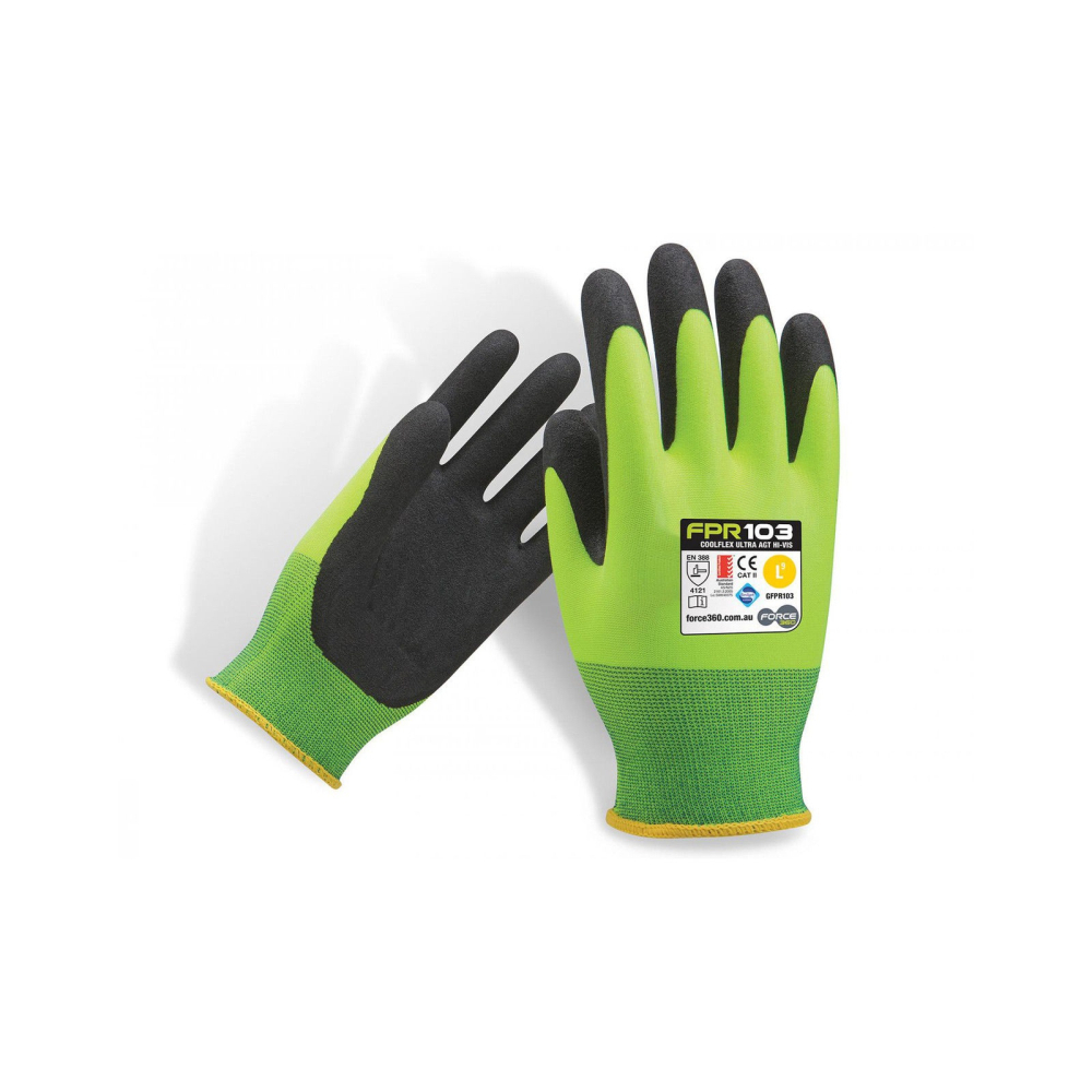 FORCE360 CoolFlex AGT Ultra Hi Vis Safety Gloves - Green - Black