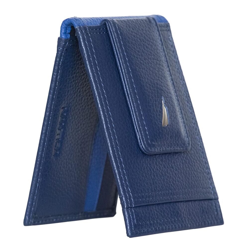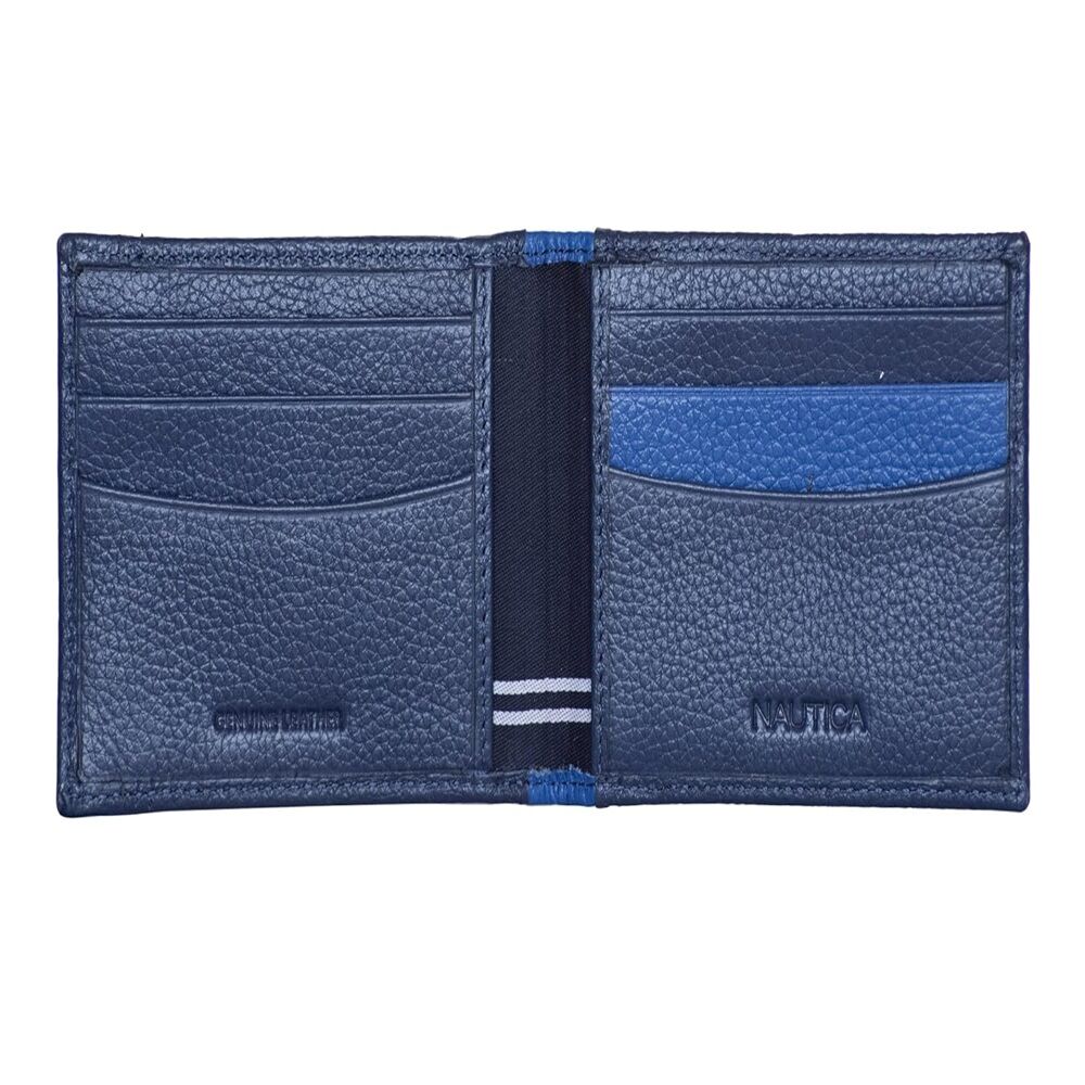 NAUTICA Men's Two-Tone Front Pocket Leather Wallet - Cobalt Blue