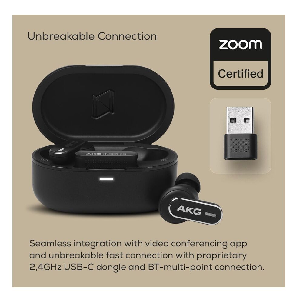 AKG N5 Hybrid True Wireless Noise-Cancelling Earbuds with 2.4GHz USB-C Dongle & Bluetooth - Black