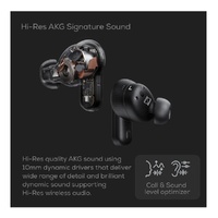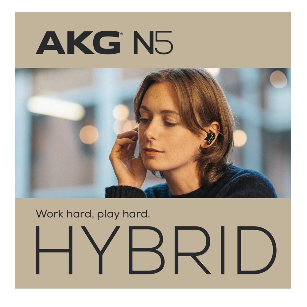 The AKG N5 Hybrid True Wireless Earbuds combine studio-quality sound with ultra-low-latency connectivity and advanced noise cancellation. Designed for both entertainment and productivity, they support dual connectivity via Bluetooth 5.3 or a 2.4 GHz USB-C dongle, delivering seamless switching between devices like smartphones, laptops, and gaming systems. Powered by 10 mm dynamic drivers with Diamond-Like Carbon (DLC) diaphragms, the earbuds produce detailed highs, rich bass, and accurate vocals with minimal distortion. They also support Hi-Res Wireless Audio via LDAC, allowing 24-bit high-performance sound for a near-studio listening experience. With AKG Spatial Audio, stereo content can be converted into immersive virtual surround sound, enhancing movies, games, and music with a wider soundstage. The earbuds also feature True Adaptive Noise Cancelling, six microphones for clear calls, and an ergonomic IP54-rated design suitable for daily use