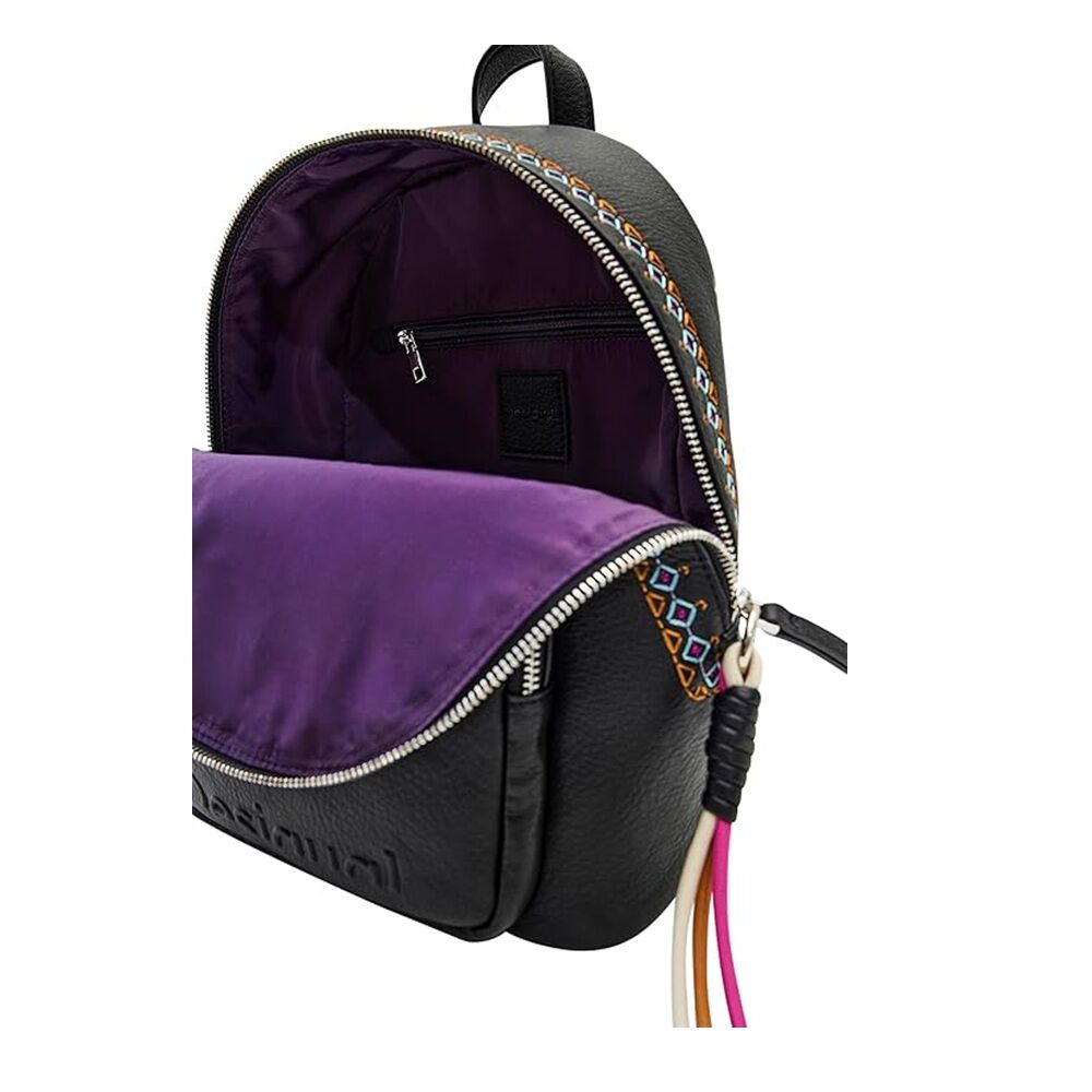 DESIGUAL Women's Small Embroidered Backpack with Multiple Pockets and Logo Detailing - Black