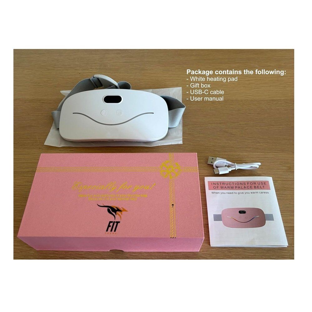 FIT FAUNA Cordless Rechargeable Menstrual Heating Pad for Cramps with 4 Heat Levels & Vibration Modes - White