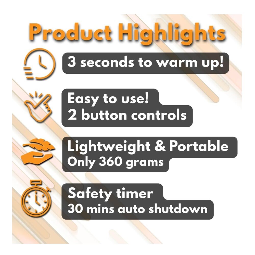 - Additional Features: Automatic Shut Off, Lightweight, Portable, Timer