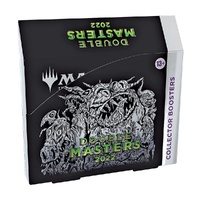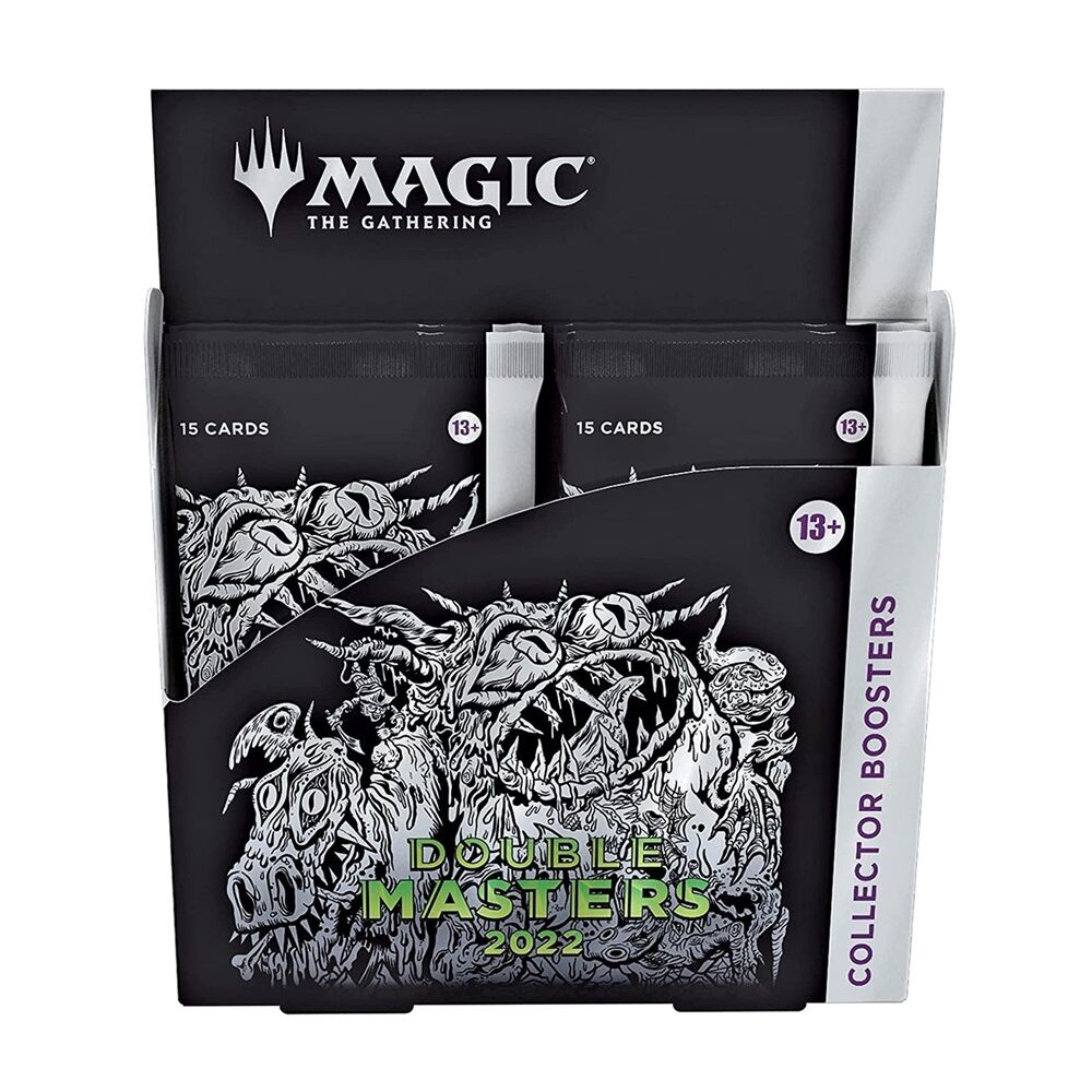 The Double Masters 2022 Collector Booster Box contains 4 Double Masters 2022 Collector Boosters. Each Collector Booster contains 15 cards and 1 Traditional Foil double-sided token, with a combination of 4 cards of rarity Rare or higher, 2–6 Uncommon, and 5–9 Common cards. Every pack contains 10–11 Traditional Foil cards and 1 Rare or Mythic Rare Foil-Etched card.
