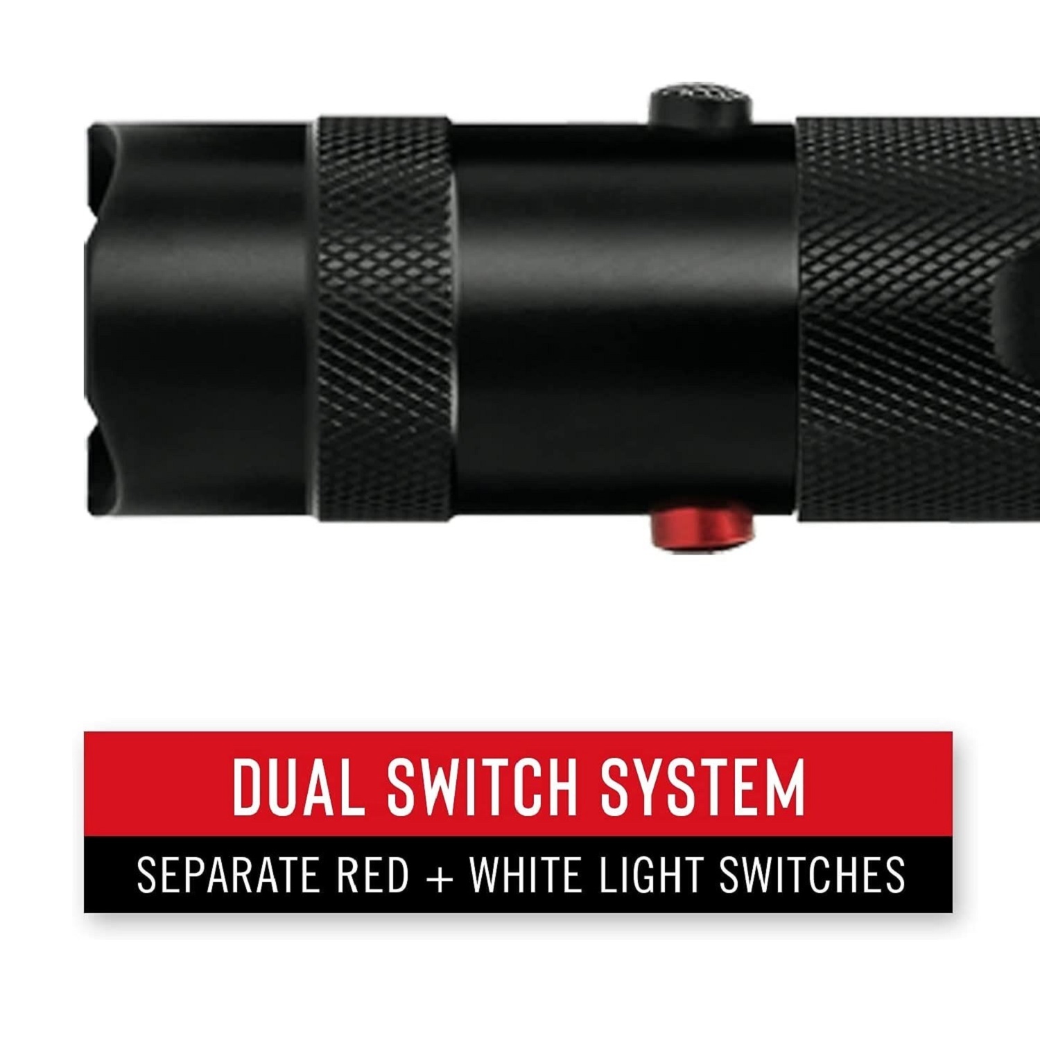 - DUAL COLOUR: White and Red beams all in one. Red light preserves night vision. Great for versatile work during the night and day.