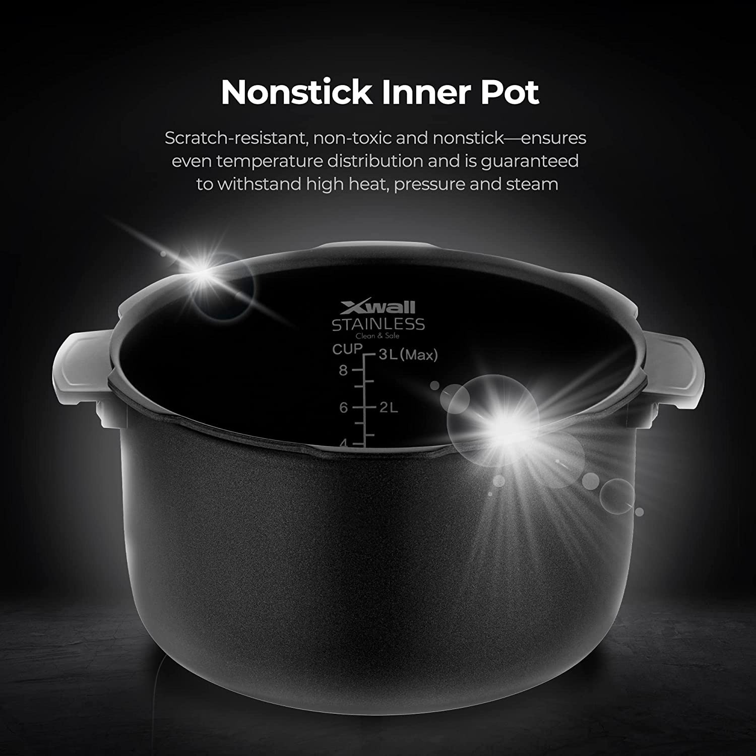 - Material: 304(18/10) STAINLESS STEEL with Xwall Coated Inner Pot