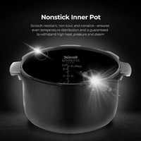 - PREMIUM QUALITY: Features a durable 5-quart 2-ply nonstick inner pot constructed of food-grade stainless steel and aluminum that allows for even temperature distribution and guaranteed durability through extreme heat, pressure and steam