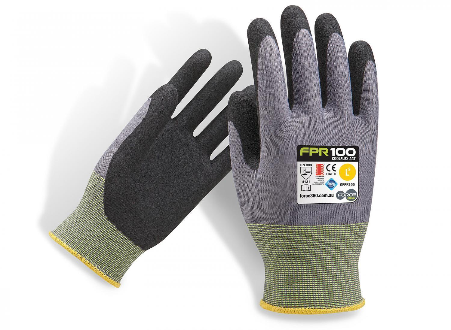 Force360 CoolFlex AGT Safety GlovesThe Force Performance Range (FPR) from Force360 have been designed and developed in Australia and incorporates the latest technologies and materials in their construction. The FPRMX8 is the premium Fast Fit FPR glove built to outperform traditional leather riggers gloves. Superior in every way. Reinforced double stitching for increased durability Extra control with pressed grip pattern Personal ID area to record wearers name or issue date Fast fit version for convenience.