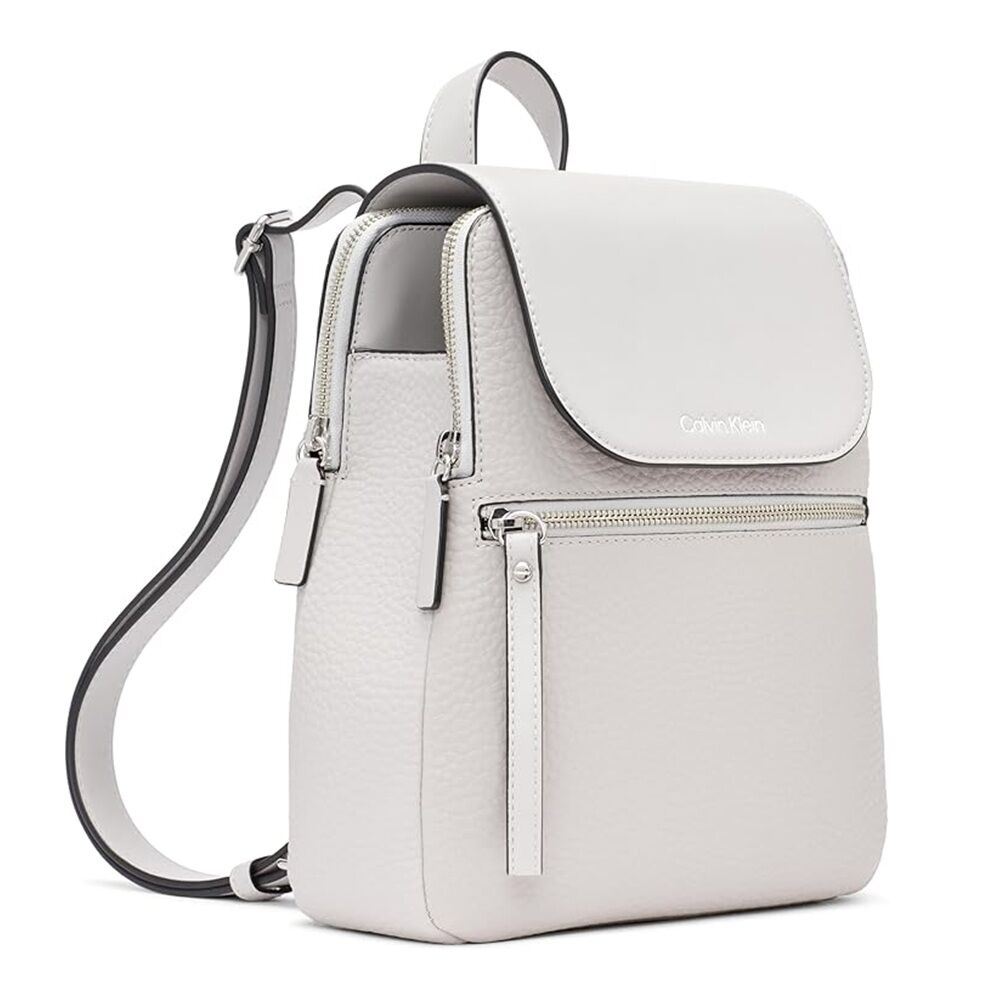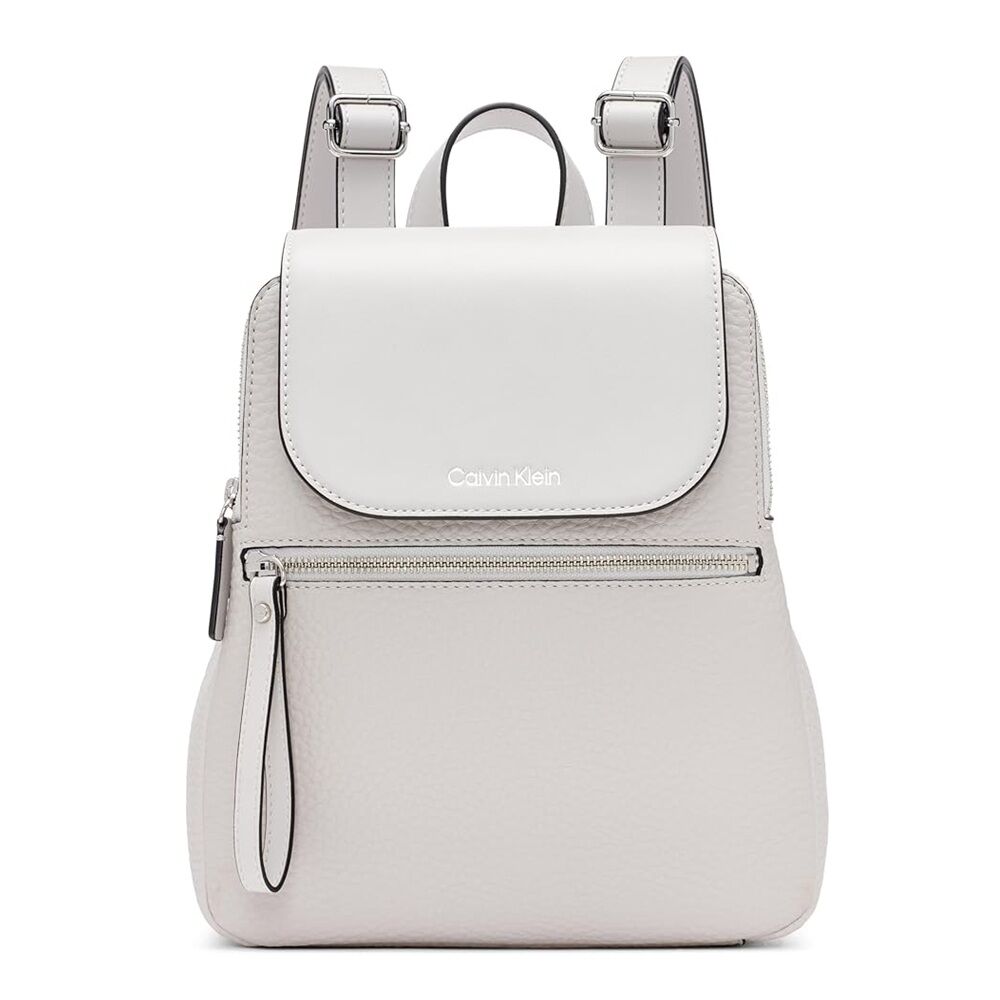 CALVIN KLEIN Garnet Triple Compartment Novelty Key Item Flap Backpack - Dove Grey
