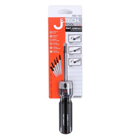 The JETECH 6-in-1 Compact Screwdriver includes Phillips #1(Small), Phillips #2(Medium), Slotted (6mm Large), T-Driver (T-15 Small), T-Driver (T-20 Medium) & T-Driver (T-25 Large) all in a sleek compact design. To select the desired head, you can just rotate the selector ring and slide the chosen head out. The Cr-V Mo construction allows it to be durable and tough.