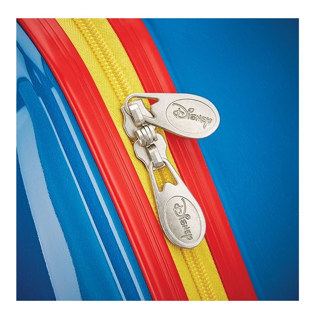 Show your love for your favorite Disney character with this hardside upright travel case from American Tourister. The American Tourister Disney 16" Upright Hardside is made from lightweight and durable ABS material and features a sleek hardside design with side-mounted skate wheels, a mono tube pull handle, and a top grab handle for easy lifting. The interior is fully lined and detailed with crisscross tie-down straps to hold clothing in place and a zip around divider that creates two separate packing compartments.
