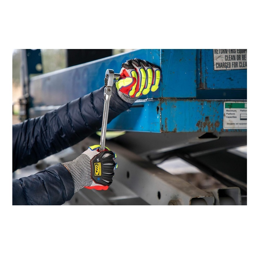Combining the Dexterity, Breathability and Flexibility of a Coated Seamless Glove, along with the Impact Protection on back of hand and fingers of mechanic style gloves, a glove to cover all mechanical protection has been created