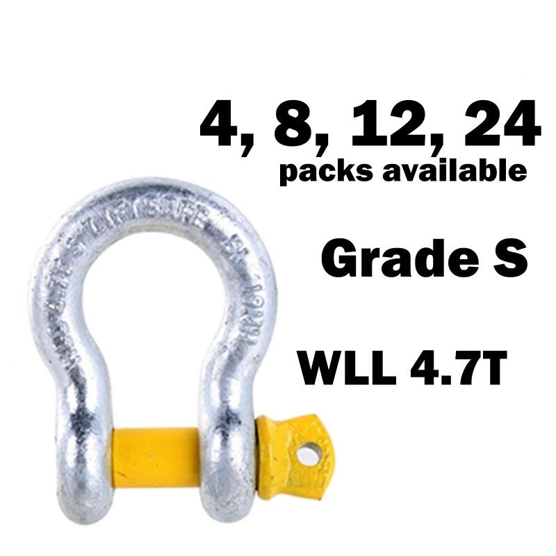- Bow Shackle, WLL 4.7T, Yellow Pin Grade S.