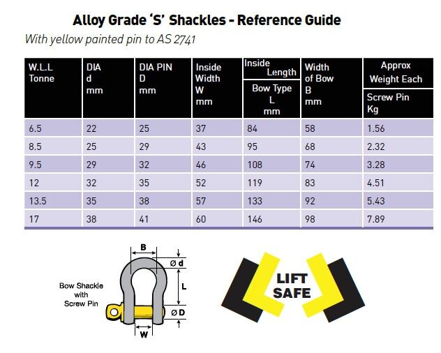 LIFT SAFE Lifting Bow Safety Shackle - 6.5ton -17ton - Grade S - Screw Pin