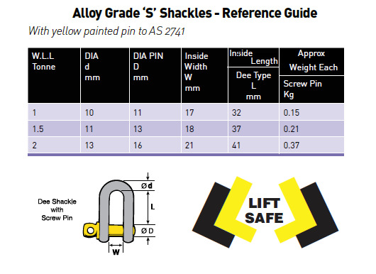 LIFT SAFE Yellow Pin Dee "D" Shackle