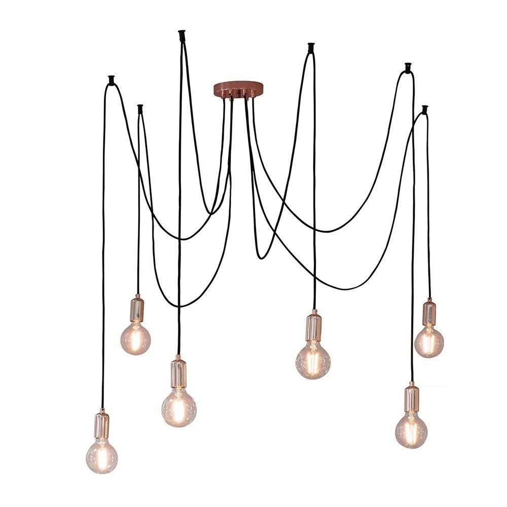 Create that cool urban look with this industrial six light pendant, simple in construction with Cooper painted lamp holders suspended from height adjustable black fabric flex. Select the position of each lamp, able to reach over a large area of your interior for perfect illumination.