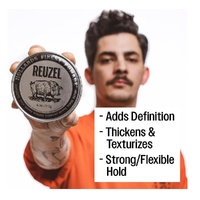Reuzel Concrete Hold Matte Pomade 113 ml offers a strong hold with a matte finish, perfect for those seeking a wax-like texture that allows for restyling as needed throughout the day. Its formula is ideal for finer textured hair, providing definition and structure without stickiness or flakes. Plus, it washes out easily due to its water-based formula, leaving no buildup behind.