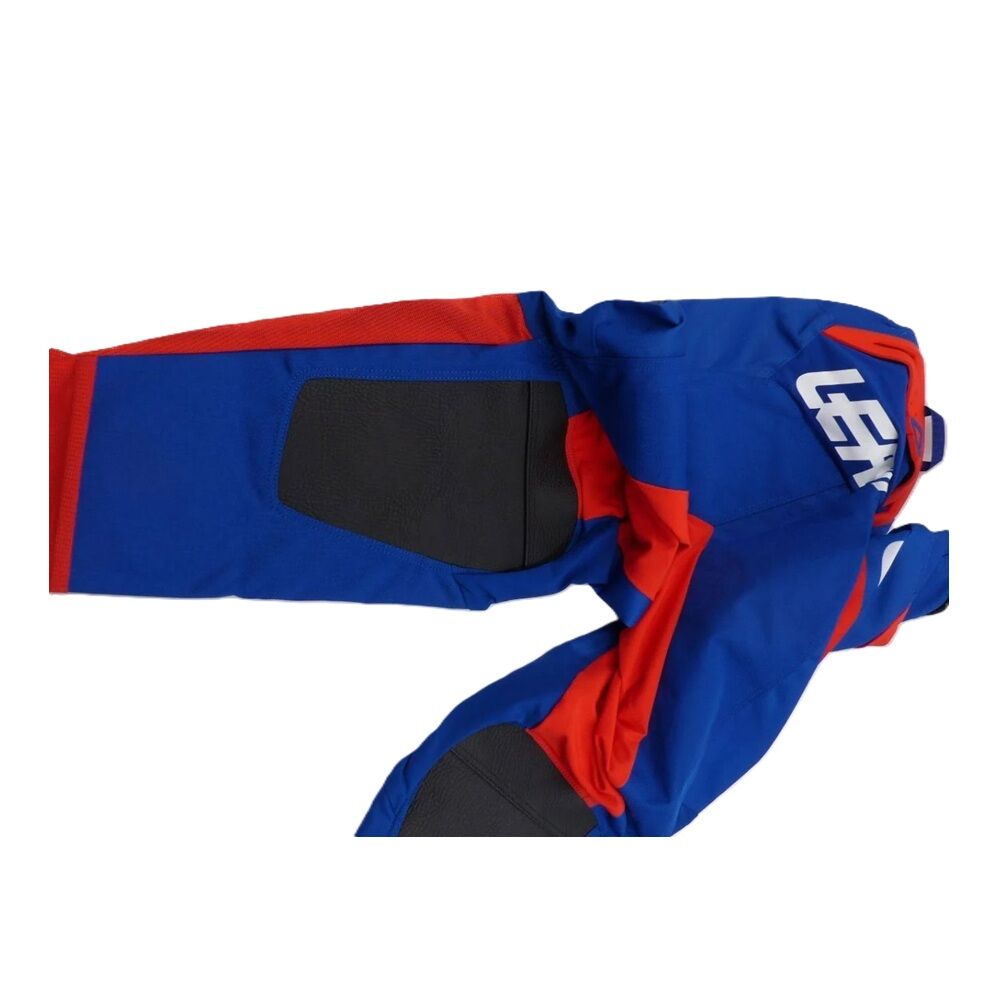 Leatt 2020 GPX 4.5 Pant has pre-curved performance fit. Light and breathable construction. Ripstop stretch and X-Flow mesh panels. Heavy duty seat and reinforced knees. Leather inner legs for bike grip. Multi-row reinforced stitching. Waist with micro adjuster and 270 degree heavy duty silicone grip. Size: 34. Comes in royal color.