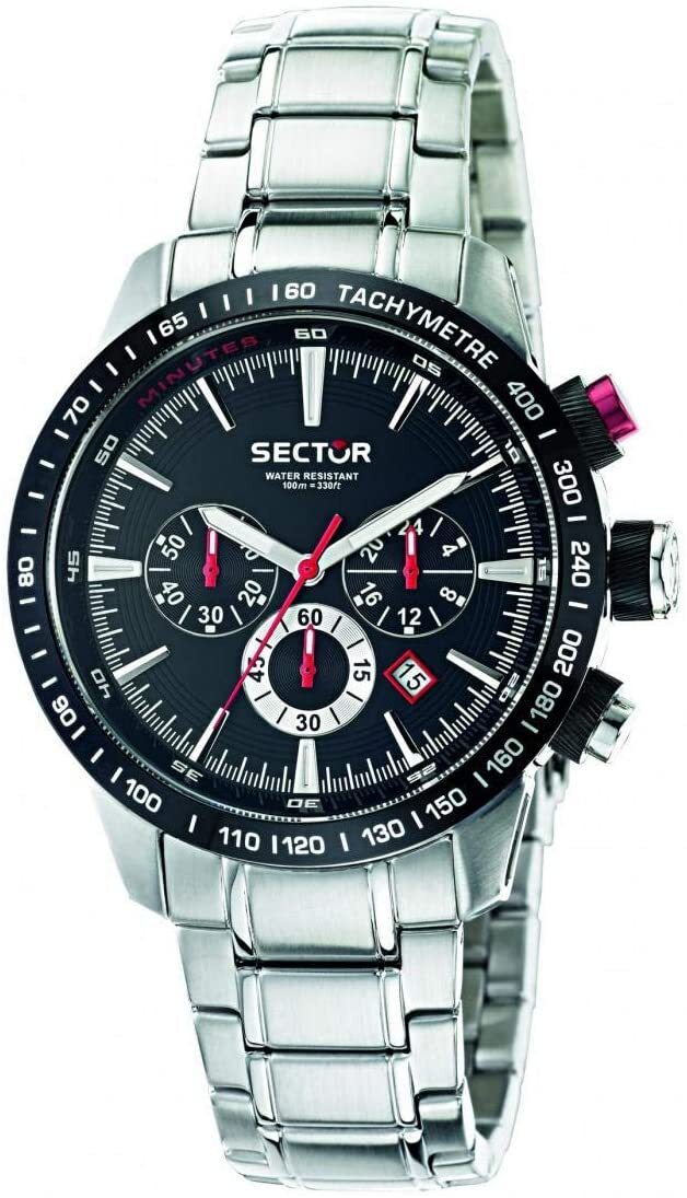 SECTOR Men's 850 Collection Chronograph Watch features a black dial, black bezel and a stainless steel case & band. Model R3273975002. Comes in Gift Box.