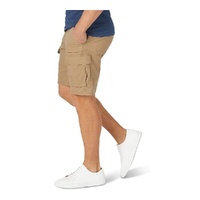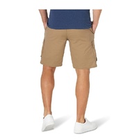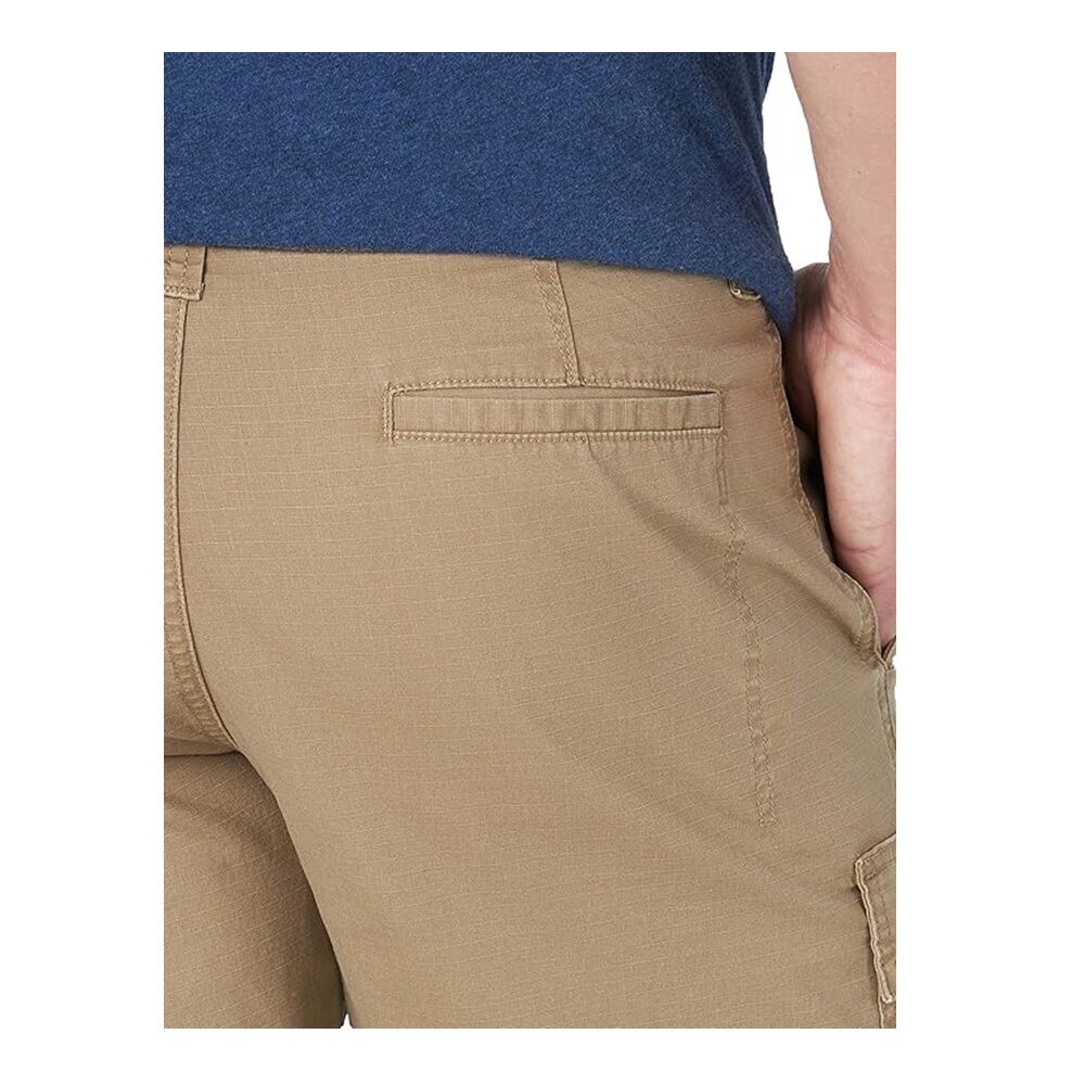 Wrangler Authentics men's classic relaxed fit stretch cargo short. This classic cargo short is constructed with durable stretch materials built for long-lasting comfort, breathability and style. Made with a relaxed fit, this cargo short sits at the natural waist and features a relaxed fit seat and thigh. Features material options. Offered in stretch cotton twill and rip stop styles. Relaxed fit. Relaxed seat and thigh and sits at the natural waistline. (6) pockets. (2) side flap pockets (2) back patch pockets, and (2) slash pockets. Versatile style. Traditional cargo style short for many uses. Secure closure. Heavy-duty zipper fly with button closure.