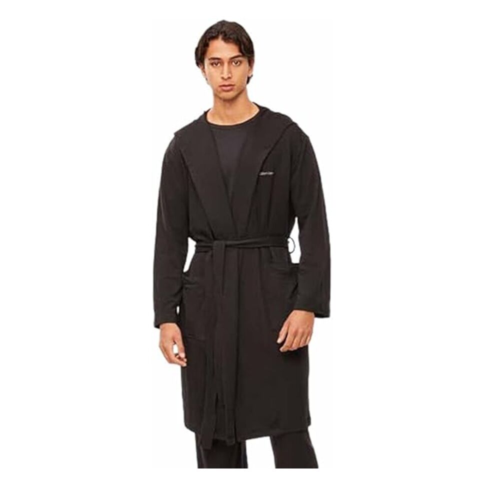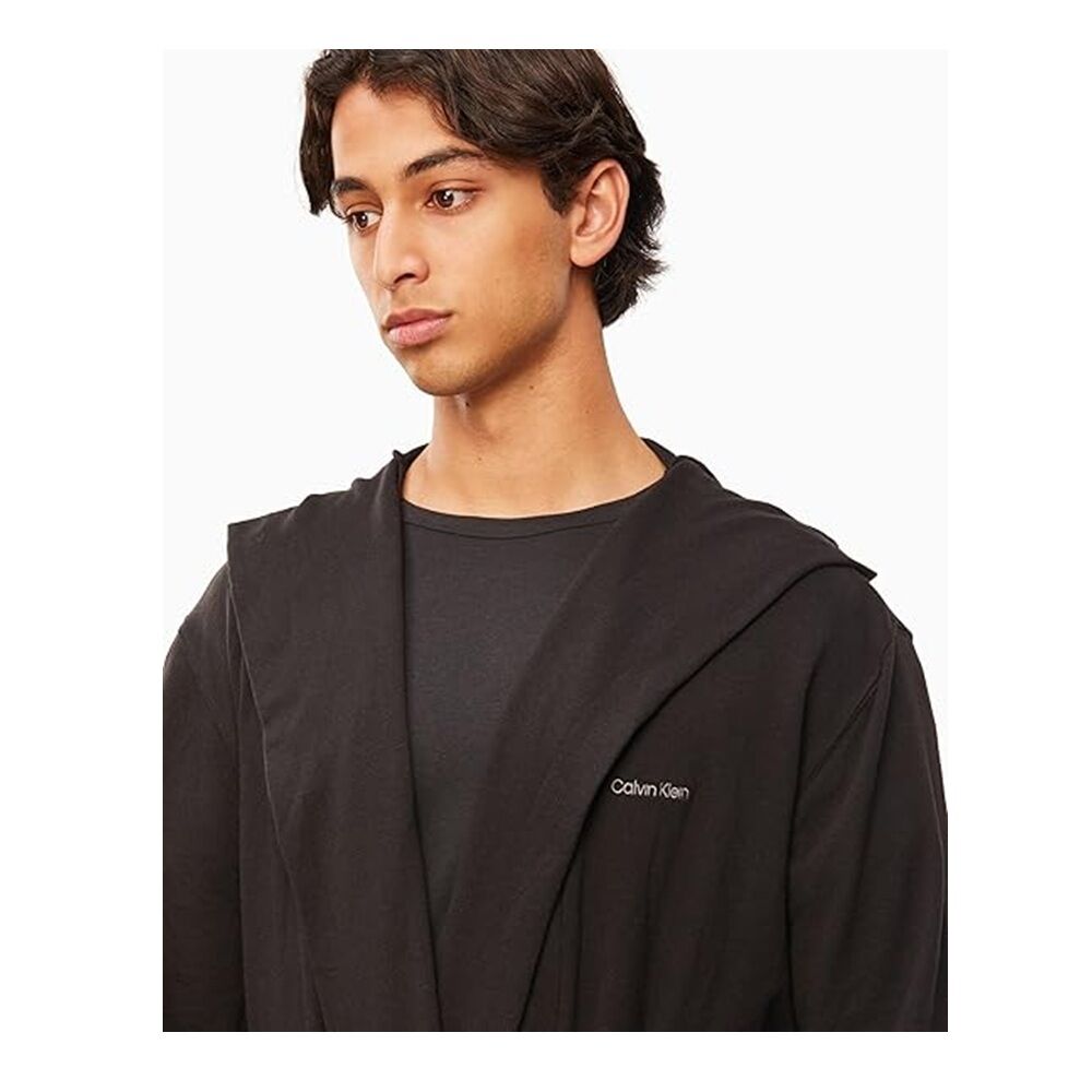The Calvin Klein Long Robe (Model NM2377) is a premium loungewear essential designed for comfort, style, and everyday relaxation. Crafted from a soft cotton-rich fabric blend, this robe delivers breathable comfort with a smooth, lightweight feel, making it perfect for lounging at home or after a shower. Featuring a classic longline silhouette, shawl collar, and adjustable tie belt, it provides a secure and comfortable fit. The robe is finished with subtle Calvin Klein logo detailing and functional pockets, combining luxury and practicality in a timeless black design.
