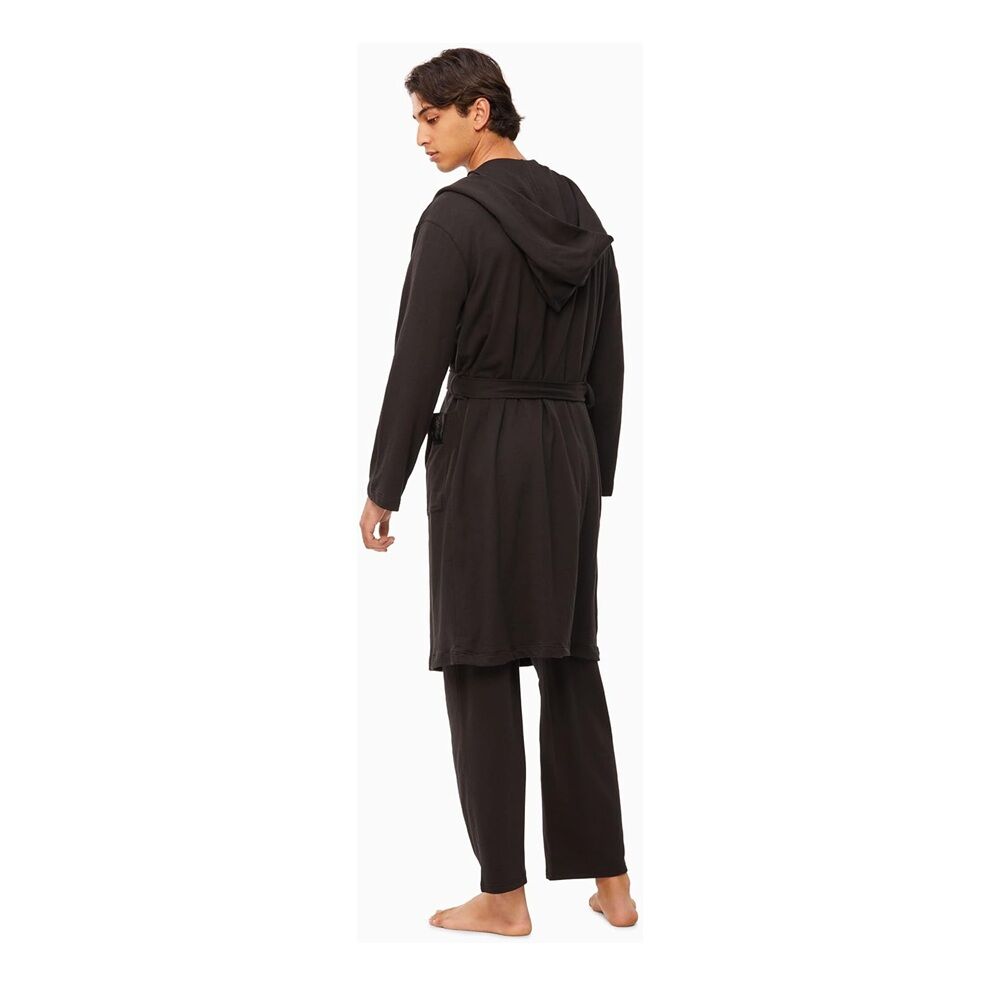 CALVIN KLEIN Men's Cotton Long Soft Belted Lounge Bathrobe - Black - NM2377