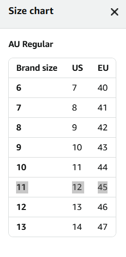 - Products are in AU sizes and their packaging is labelled as such. Please refer to the size chart for conversion to US