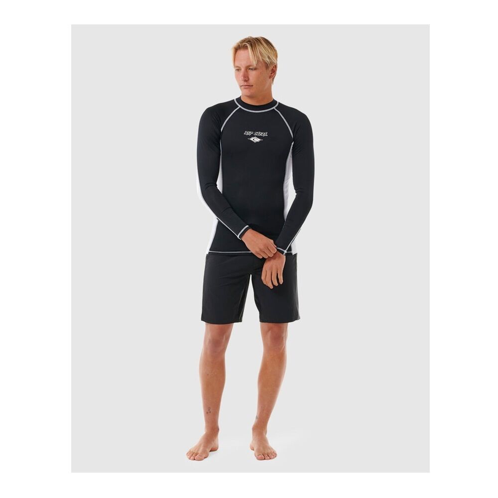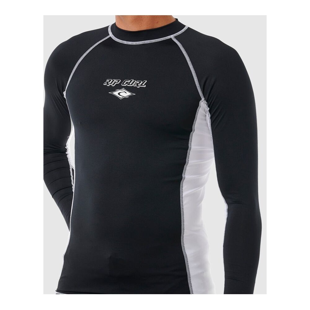 RIP CURL Men's Fade Out UV Long Sleeves Rash Vest - Black / White