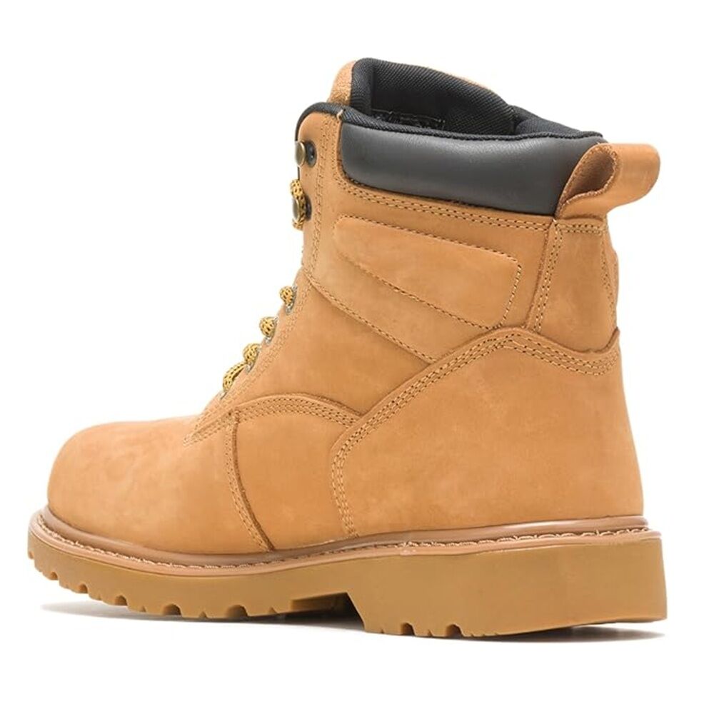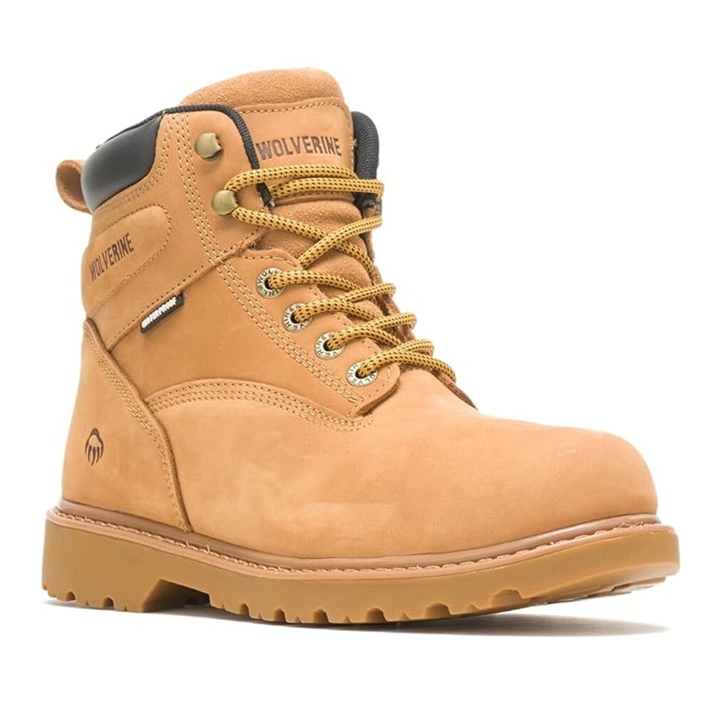 The WOLVERINE Men’s Floorhand 6" Waterproof Work Boot is a reliable and durable choice for demanding work environments. Crafted from premium leather in a classic wheat finish, this boot combines rugged durability with all-day comfort. Built with a waterproof construction and moisture-wicking lining, it keeps your feet dry and comfortable in wet conditions. The lightweight cement construction reduces fatigue, while the slip-resistant rubber outsole ensures stability on various surfaces. Designed for construction, outdoor work, and everyday wear, the Floorhand boot delivers dependable performance at an affordable price point.