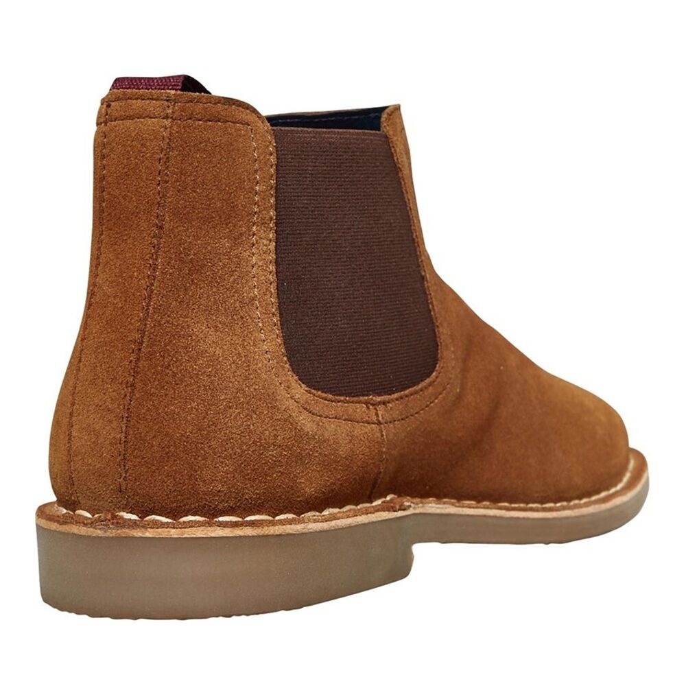 This signature Ben Sherman stitchdown chelsea boot in 100 percent suede. Designed with a shirt tab trim, branded sole and house check lining. A wardrobe staple. Comfortable rubber sole. Composition: Suede Upper, Textile and Synthetic Mix Lining, TPR Rubber Outsole. Circumference of Opening: 29cm. Height from Top of Heel to Topline: 11cm. Widest Part: 18cm. The Garcia Suede Stitch-down Chelsea Boot by Ben Sherman. Soft black suede, with twin elastics for a neat fit. Made in a stitch-down construction on an easy to wear rubber sole.