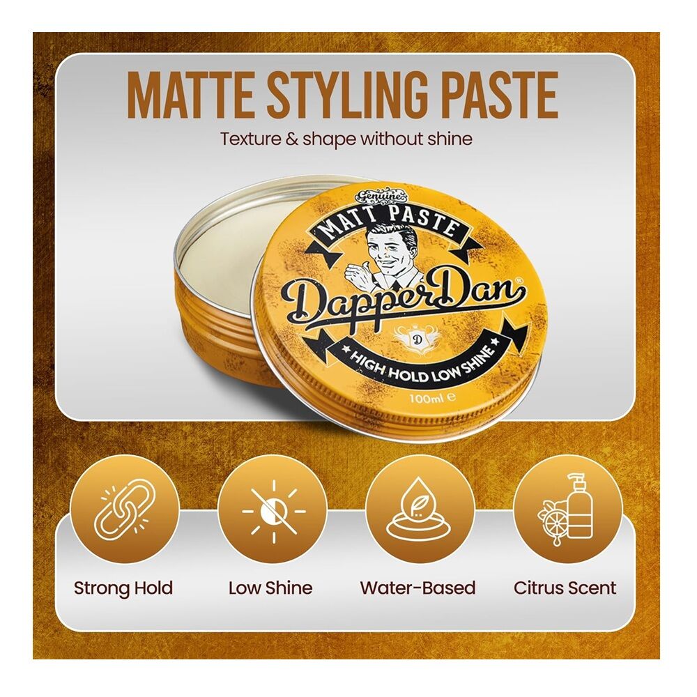 - DAPPER DAN MATT PASTE is our flagship men’s wax hair styling product, and you will not find a better or more versatile matte hair styling wax. Its strong hold makes it suitable for all hair styles from the conservative to the adventurous