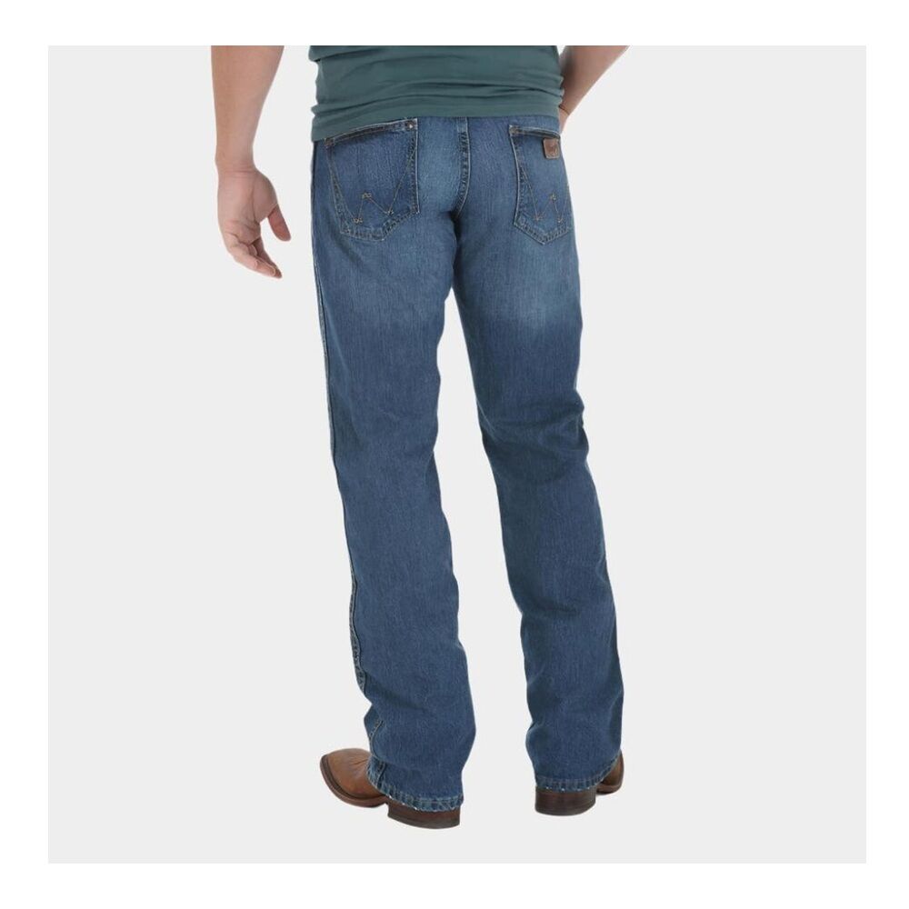 A new twist on the genuine article. Classic denim meets contemporary styling in the wrangler retro mid rise relazed fit boot cut jean. Sits lower on waist with an eased seat and thigh for extra style and comfort.