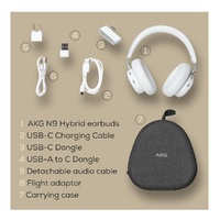 AKG N9 Hybrid Noise Cancelling Over-Ear Headphone with 2.4GHz USB-C Dongle - White